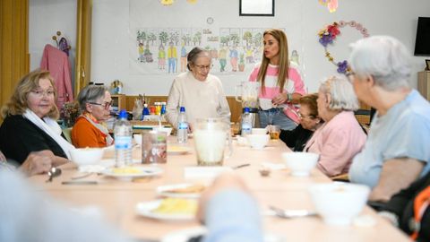 Vanessa Taboada explica que aunque la actividad comienza a eso de las 16.00 horas «ás 15.30 horas xa están todos colocados e agardando». Si los mayores esperan con ansia la hora de este particular taller de cocina y nutrición, lo mismo le pasa a Vanessa que cuenta que «Eles o pasan pipa e eu máis. Por min querería que isto durara toda a vida. Son tres horas marabillosas eu salgo de alí moi feliz».
