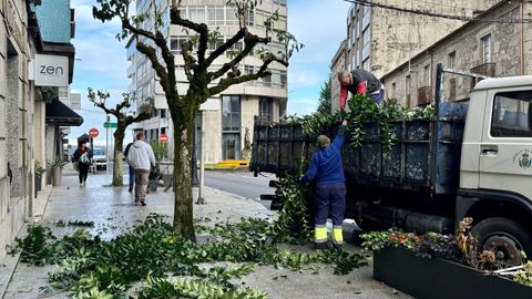 Las brigadas de operarios del Concello de A Estrada realizan estos días trabajos de poda de los árboles existentes en distintas calles del casco urbano. Este martes las actuaciones, habituales en esta época del año, llegaron a la Praza da Farola, tras completarse las mejoras en las calles Ponteareas, Ulla y Calvo Sotelo. El programa llegará a más calles en los próximos días.