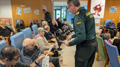La residencia Virxe das Dores de Forcarei fue escenario este miércoles de una sesión informativa impartida por la Guardia Civil y centrada en la protección y seguridad de las personas mayores. En ella se ofrecieron pautas y recomendaciones para prevenir estafas a través del teléfono móvil, evitar robos durante las salidas habituales y, en general, reforzar la autonomía y la tranquilidad de los residentes.