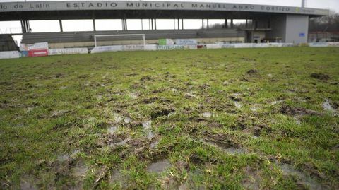 El concejal de Deportes de Lalín, José Antonio Varela, aseguró ayer que desde el Concello «estase traballando para poñer fin ao problema» y asegura que al ser césped natural y el mal tiempo de las últimas semanas, con copiosas lluvias e incluso nieve, el terreno de juego acaba resintiéndose. «Estamos buscando solución, non arreglos só para a fin de semana», manifestó.
