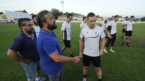 El alcalde de Lalín, Rafael Cuíña escenificó ayer ese apoyo al nuevo proyecto del club confraternizando con técnicos y jugadores durante el entrenamiento de última hora de la tarde.