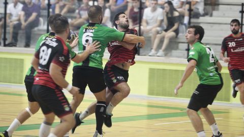El duelo arrancó con una gran igualdad, con alternativas constantes en el marcador y muchas imprecisiones en el pase. Los locales fueron superiores en los ataques estáticos. Los de Milucho, con continuos cruces en las transiciones en ataque resolvían con cierta solvencia ante la defensa 6-0 planteada por Fernando Vázquez. Los dezanos lograron ponerse por delante con ventajas de dos y tres goles, que fueron contrarrestadas por el Xiria gracias a los lanzamientos de media distancia. Al descanso se llegó con ventaja parcial para el Bm. Lalín (14-13).