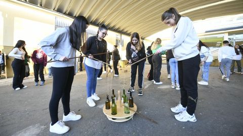 Ayer sardos y gallegos intercambiaron juegos populares de la mano de miembros de la Asociación Galega do Xogo Popular Tradicional. Primero con una exposición que contó con la participación de los chavales en la biblioteca y luego sobre el terreno en el patio. La celebración acabó con una merienda organizada por el instituto.