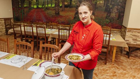 Este negocio familiar ya cuenta con la segunda generación al frente, con Cecilia Sanmartín Soto y su hermana Cristina. Sus padres estuvieron durante décadas al frente del negocio, con Dolores Soto a cargo de los fogones, con un reconocimiento en el 2017 en los premios Maruja Gutiérrez que otorga el Concello de Lalín. Al año siguiente, en el 2018, se le otorga el premio de gastronomía Galo de Curral de Vila de Cruces, ya que en su menú se encuentra este plato, del que forma parte desde los inicios del local.