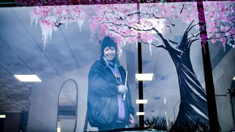 Tres días de trabajo intenso le permitieron completar una obra que despierta la curiosidad y admiración de quienes pasean por esa zona de Donramiro, habitual por parte de muchos lalinenses, o transitan con sus vehículos. Una forma de embellecer el escaparate en estas fiestas navideñas para lo que Olalla Framiñán empleó inicialmente rotuladores para cristal, pero dada la complejidad y amplitud de la propuesta al final recurrió también al pincel para trazar esos bellos paisajes y personajes vinculados a Japón.