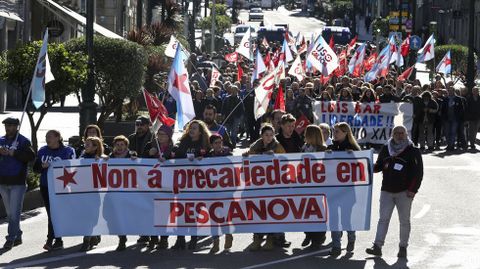 22 mar 2017 . Actualizado a las 05:00 h.Trabajadores de Pescanova escenificaron este martes en Vigo una hecho inédito en los más de 50 años de historia del grupo pesquero: una marcha en manifestación por el centro de la ciudad, tras una pancarta en la que se podía leer «Non á precariedade».