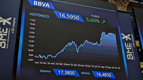 Lógica era también la evolución positiva de la cotización del BBVA. Y es que en su caso los inversores, además de respirar aliviados por el fin de un largo período de incertidumbre, celebran que la entidad vaya a disponer de más recursos para retribuir a sus accionistas. Sin ir más lejos, en pocas semanas abonará el mayor dividendo de su historia (0,32 euros por acción, 1.800 millones en total), que acompañará de un plan de recompra que también elevará el valor de los títulos.