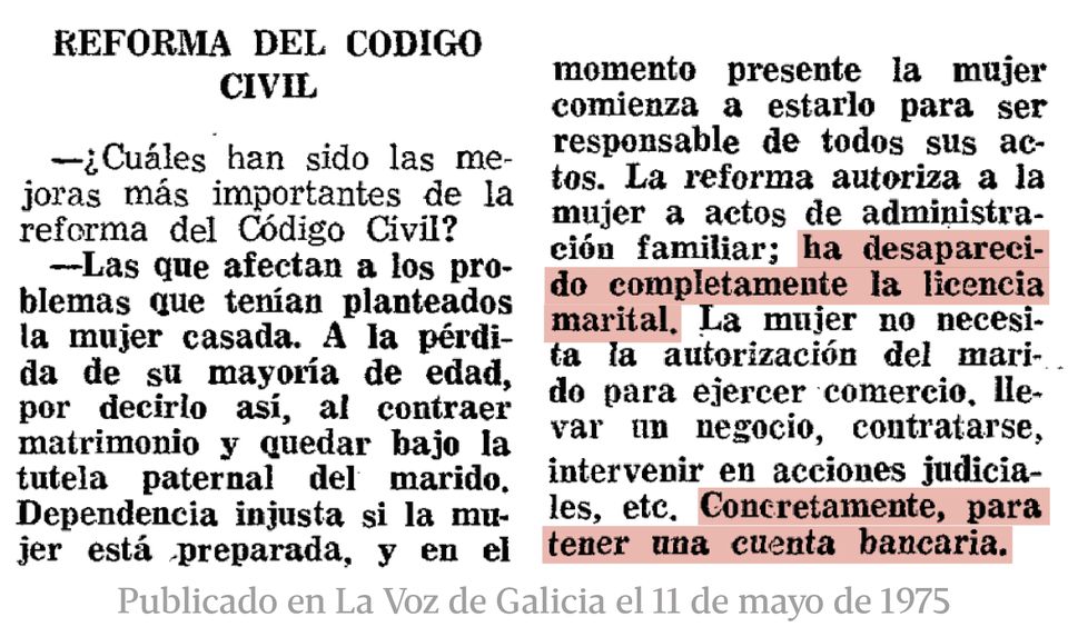 Meses antes de morir, Franco reformó el Código Civil. Tras décadas de restricciones, las mujeres pudieron, por fin, abrir una cuenta bancaria a su nombre sin necesidad de que su padre o su marido se lo autorizara. La llamada licencia marital desaparecía, eliminando uno de los últimos obstáculos legales que limitaban su independencia económica. Hace apenas 50 años, España todavía negaba a las mujeres un derecho tan básico como disponer de su propio dinero.