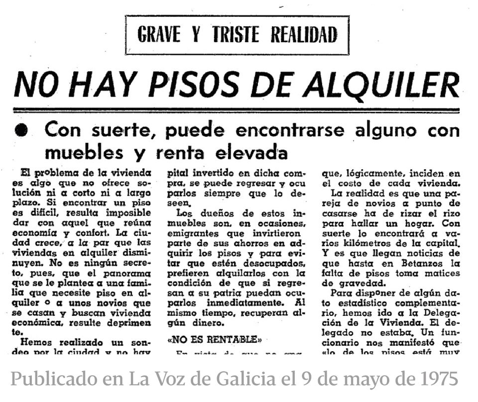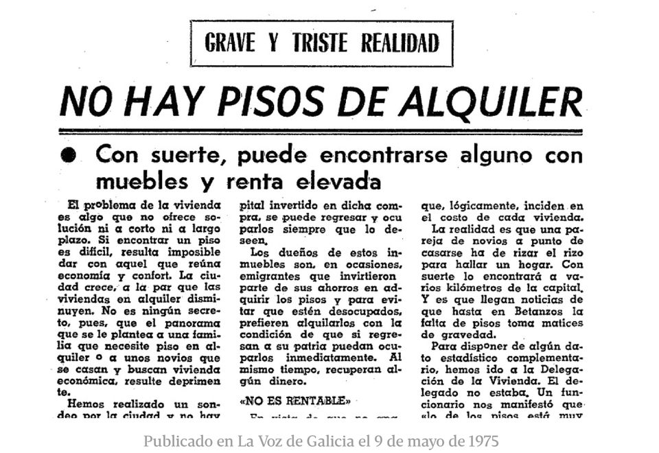 Durante la dictadura, la política de vivienda estaba lejos de resolver las necesidades de la población más vulnerable. Franco no inventó las viviendas de protección oficial, que ya estaban contempladas en la Ley de 1911, y la Ley de Viviendas de Rentas Limitadas de 1954 apenas permitió construir, siguiendo criterios actuales, unas 735.400 viviendas en 36 años para personas con bajos recursos. La situación era especialmente dura en las grandes ciudades: inmediatamente antes de la muerte del dictador, Madrid contaba con más de 30.000 chabolas donde vivían al menos 100.000 personas.