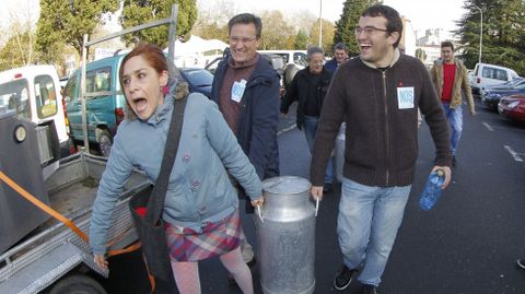 La contrariedad por coincidir con la coalición Podemos-Anova-EU era patente en Nós. La lista del BNG había ideado un golpe de efecto para izar el telón de su campaña. El número dos por Pontevedra, y edil en Rodeiro, Alberte Lamazares, llegaría con un tanque de leche ordeñada al alba en su propia granja para distribuirla entre los marineros. Sería la metáfora redonda. El abrazo solidario entre dos sectores oprimidos por los fríos dictados de los despachos de Bruselas y Madrid. La fotografía perfecta por gentileza de Nós. Nadie podía eclipsarla. Y menos En Marea, la alternativa que el último sondeo del CIS sitúa en disposición de aniquilar 20 años de representación activa del nacionalismo gallego en el Congreso.