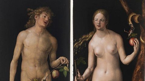 Afortunadamente, cuando a nuestro ilustrado Carlos III se le ocurrió quemar, por obscenas, las dos tablas de Durero que centran esta página, alguien le convenció de que no lo hiciera, argumentando que podían servir para la enseñanza de jóvenes artistas. Esas obras permanecieron bajo acceso restringido hasta que el Museo del Prado las exhibió en 1838. Desde entonces, además de servir de enseñanza sobre los cánones de belleza renacentistas, que tanto preocupaban a su autor, ofrecen a todos un testimonio de igualdad formal entre la mujer y el hombre. Adán Durero y Eva Durero son nórdicos y se parecen mucho.
