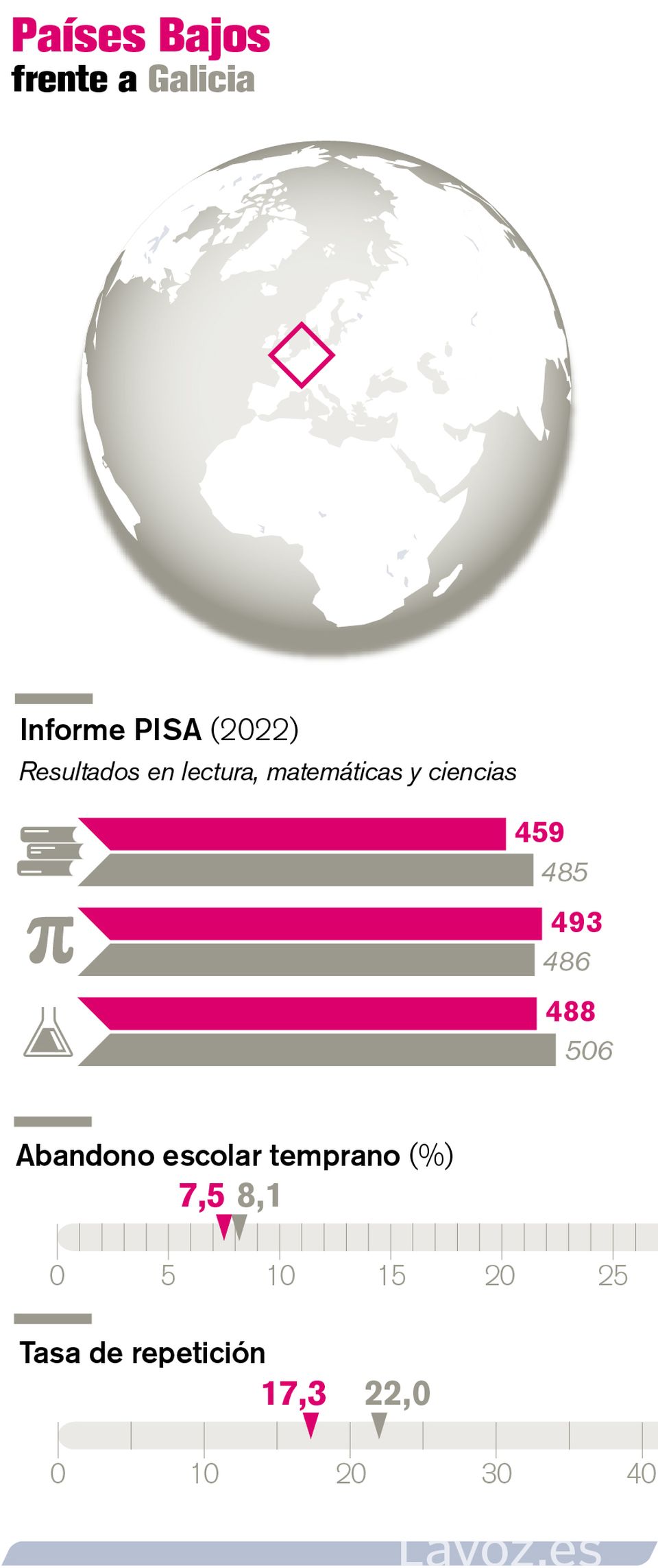 Ahora ya sabes que gallegos y neerlandeses empezamos este curso con algo en común: las aulas libres de teléfonos. Pero ¿qué más nos une a nuestros vecinos europeos del centro? Lo cierto es que no mucho más. Por ejemplo, en los Países Bajos también existe la primaria, pero la suya dura ocho cursos, y no seis como la nuestra. El motivo es que los neerlandeses empiezan esta etapa con tan solo 4 años, edad a la que ya es obligatorio ir a la escuela.