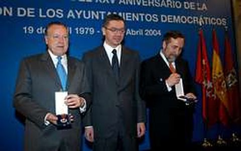 Los ex alcaldes de la capital Juan Barranco y José María Alvarez del Manzano recibieron ayer la Medalla de Honor de Madrid en un acto celebrado en la Casa de la Villa, en coincidencia con el 25 aniversario de la constitución de los ayuntamientos democráticos. Ambos recibieron las medallas de manos del alcalde, Alberto Ruiz-Gallardón, en presencia de la presidenta regional, Esperanza Aguirre; el ex presidente Joaquín Leguina; y el portavoz del PSOE en la Asamblea, Rafael Simancas, todos ellos miembros de la corporación en algún momento.