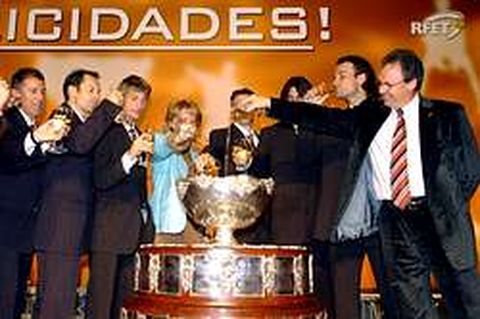 07 dic 2004 . Actualizado a las 06:00 h.La Ensaladera más preciada del mundo del tenis se quedará en la capital como promoción y apoyo a la candidatura olímpica de Madrid 2012. Los campeones de la Copa Davis ofrecieron el trofeo de plata al pueblo de Madrid y proclamaron públicamente su apoyo a la candidatura olímpica, en un gesto de buena voluntad y de desagravio tras la polémica generada por la designación de Sevilla como sede de la final en detrimento de la capital. «Madrid sabrá agradecer y devolver este favor», sentenció el alcalde de Madrid, Alberto Ruiz-Gallardón. La Ensaladera ha quedado instalada en el Ayuntamiento de Madrid, donde permanecerá durante el año 2005, aunque el presidente de la Federación, Agustín Pujol, promotor de la idea de que la Ensaladera se quede en la capital, se comprometió a trasladarla a otras ciudades, «porque España quiere verla». Ante más de un millar de seguidores que esperaban a los héroes de la Davis en la Plaza de la Villa y con la música del We are the champions de fondo, Carlos Moyà, Rafa Nadal, Juan Carlos Ferrero y Tommy Robredo fueron aclamados. El trío de capitanes, el G-3 formado por Jordi Arrese, Juan Avendaño y Josep Perlas, se atrevió a cantar desde el balcón animando a los madrileños a organizar los Juegos Olímpicos de dentro de ocho años: «¡A por ellos, oé...!», gritaron. «Esta ensaladera va por todos vosotros. Estamos muy comprometidos con Madrid 2012. Muchas gracias por estar aquí», apuntó Moyà ante un público entregado. «Muchas gracias. Nos habéis dado muchísimo calor. Hemos ganado la Ensaladera pero es vuestra». «Estamos en una nube y es gracias a vosotros. Damos nuestro apoyo a la candidatura de Madrid 2012. Sería muy bonito tener unos Juegos aquí», espetó el joven Nadal. Tommy Robredo y Rafael Nadal son los dos únicos integrantes del actual equipo español de la Copa Davis que podrían tener opciones de jugar en el 2012. Rafael Nadal, de 18 años, llegaría en plena madurez a este acontecimiento y para Robredo, que ahora tiene 22 y tendrá entonces 34, podría ser una despedida de oro. Por la tarde, el equipo español de tenis fue recibido por la presidenta autonómica, Esperanza Aguirre. Los jugadores llegaron a la Real Casa de Correos pasadas las cinco entre gran expectación y en una Puerta del Sol abarrotada de gente. Tras firmar en el libro de visitas, con mención expresa a Madrid 2012 por parte del presidente de la Federación de Tenis, Agustín Pujol, los jugadores se asomaron al balcón donde fueron recibidos con una gran ovación. Los asistentes corearon los nombres de todos y cada uno de los integrantes del equipo español que batió a Estados Unidos y hasta la presidenta regional tuvo que botar después de que los aficionados gritasen: «Que bote la Espe». Aguirre dirigió unas palabras a los jugadores y al equipo técnico para elogiar el partido que jugaron el pasado fin de semana en Sevilla y recordó que España «es uno de los siete países que ha conseguido ganar este premio en dos ocasiones». La titular del Gobierno autónomo dijo que la Copa Davis «es algo más que una competición, un premio que trasciende por su importancia, enorgullece a mucha gente y otorga la gloria deportiva a quien la gana». «Esta Copa Davis es un triunfo de España y los españoles nos hemos volcado en ella con nuestro equipo nacional. En estos años se ha demostrado que ha habido una gran pasión por el tenis, por los colores de España y unos jugadores tan extraordinarios como vosotros», aseveró Aguirre. Pujol agradeció el «baño de masas» con que les ha recibido el pueblo de Madrid y expresó su confianza en que ésta no sea la última Copa Davis que ganen los madrileños. Asimismo, incidió en que el compromiso del tenis español «era ofrecer esta Ensaladera al pueblo de Madrid y a su candidatura olímpica». «Aquí la tenéis, va a estar en Madrid durante todo el año para que Madrid 2012 pueda capitalizarla y utilizarla para ese fin que todos queremos, que es que Madrid acoja los Juegos del 2012. El tenis español apuesta por ello y creo que la mejor colaboración era traer la Copa Davis aquí y lo hemos conseguido. Va por vosotros», concluyó el representante de la Federación. Los jugadores se fotografiaron con la Ensaladera y con buena parte de las diputadas del PP, que no quisieron faltar a esta cita, al igual que cientos de niños que acudieron a ver a sus ídolos de cerca.