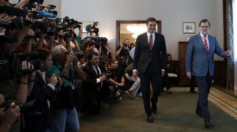 «Yo no puedo gobernar si Ciudadanos se abstiene y el PSOE vota en contra». Eso es lo que dijo Rajoy el pasado miércoles tras su reunión con el socialista Pedro Sánchez para insinuar que, si el bloqueo permanece, no se presentará a la investidura. Algo se tiene que mover. Y, aunque en el PP sitúan toda la responsabilidad en el PSOE y reiteran que incluso el apoyo de Ciudadanos sería insuficiente, en Génova tienen claro que la pieza clave para que Mariano Rajoy pueda ser investido, el engranaje que puede hacer que todo el mecanismo parlamentario se mueva en cadena, está en el partido naranja. El objetivo prioritario es ahora conseguir que Ciudadanos pase de la abstención al sí en la investidura con la misma naturalidad con la que pasó del no a la abstención. Algo que los populares consideran posible. Eso supondría que Rajoy llegaría al 2 de agosto con 169 votos a favor, que llegarían a 170 con la suma de Coalición Canaria, que se da por segura. Un escenario muy cercano ya a la mayoría absoluta que pondría muy difícil al PSOE mantener el bloqueo y que podría justificar su cambio de criterio, pasando del no «a día de hoy» a la abstención de todos o de algunos diputados socialistas.