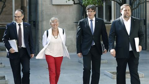 Las advertencias del propio Junqueras en el sentido de que irían adelante con el proceso diga lo que diga el Gobierno central se tornaron ayer en cautelas ante las posibles consecuencias. «Cuando tienes un Estado que te envía a la Guardia Civil a vigilar un acto político, no seremos ingenuos. Como los otros no explican nada, nosotros lo explicaremos cuando tengamos los itinerarios completos», señaló el portavoz de la Generalitat, que añadió a este argumento el de que «la democracia está en peligro».