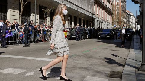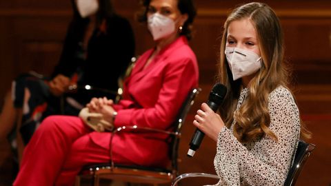 La princesa de Asturias sigue así los pasos de su padre. Al igual que este, pronunció sus primeras palabras en público con 13 años, aunque en el caso de Felipe VI fue durante la entrega de los Premios Príncipe de Asturias en 1981 y su hija lo hizo para leer el Artículo 1 de la Constitución en un acto organizado con motivo de su 40 aniversario.