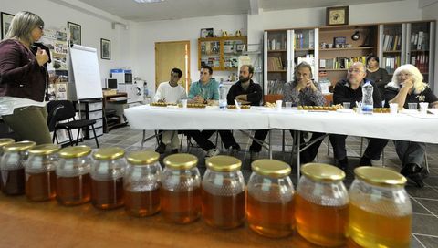 Durante esta semana, hosteleros, catadores de vino y hasta apicultores, se dieron cita en las instalaciones que la Casa do Mel tiene en Goente para seleccionar la mejor variedad de miel, tanto clara como oscura. En total, se presentaron 28 muestras. «Quizás este ano sexan demasiadas», explica el presidente de la institución, Manuel Ferreira. ¿La razón? «Un catador non debería probar ao día máis dunha decena, pero este ano tivemos unha resposta moi elevada con 16 claras e 12 escuras». Ferreira subraya la importancia de esta actividad porque «é a mel que acabamos comercializando durante todo o ano». Tras las catas, esta tarde, a las 18.30 horas, el biólogo Antonio Gómez Pajuelo ofrecerá una conferencia sobre la mortalidad en las colmenas. Ya el domingo, se celebrará la Feira do Queixo e do Mel con comida popular, talleres infantiles y verbena.