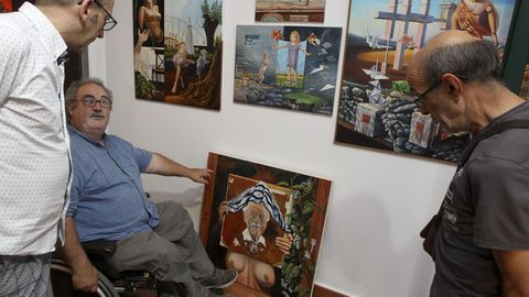 Al galerista no le llegan los elogios para alabar la elevada calidad artística de una exposición integrada por una treintena de obras y cuyo título hace referencia al período cronológico (entre los años 2014 y 2017) en el que tomaron forma gracias a la paleta de Marcor. Un pintor singular que, pese a las dificultades -una lesión medular lo dejó hace algún tiempo en una silla de ruedas-, nunca ha renunciado a su pasión. «En mi trabajo diario -advierte-, trato de plasmar escenas e historias vividas por mí o por personas cercanas. Las luchas, los retos que cada uno debe superar a diario por la supervivencia, tratando de no sucumbir a las adversidades que nos acucian y transformándolas al lenguaje pictórico, simbolismos y texturas con colores que denotan mi estado anímico».