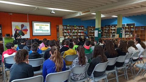 Esta semana llegó al colegio A Solaina de Narón su campaña de promoción de la donación de órganos y hábitos saludables de vida que esta llevando a cabo la delegación ferrolana de Alcer, la asociación de Lucha contra las enfermedades renales. La trabajadora social Ángela Breijo, impartió una charla al alumnado de sexto de primaria. Junto a ella acudió un voluntario de la entidad, José Antonio Vázquez, quien padece enfermedad renal y recibió un trasplante hace ahora 28 años. En esta actividad participaron un total de 44 alumnos a los que se les contó la historia real de Iria, una persona que padece Enfermedad Renal Crónica desde los 8 años. A través de esta historia, Ángela y José Antonio explicaron qué es la enfermedad renal, los tipos de tratamientos renales sustitutivos y como afecta al proyecto de vida de una persona menor de edad este tipo de enfermedad. El alumnado participa de forma muy activa contestando a las preguntas que se van exponiendo a lo largo de la sesión al mismo tiempo que tienen su espacio para consultar sus dudas.