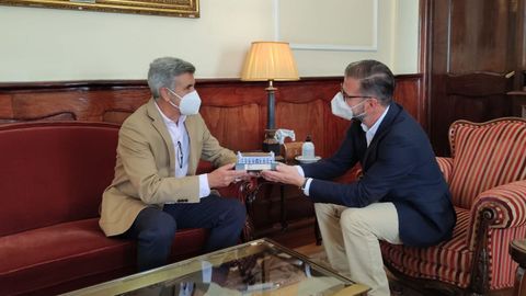 31 ago 2021 . Actualizado a las 05:00 h.El alcalde de Ferrol, Ángel Mato, recibió ayer oficialmente al presidente de la Autoridad Portuaria, Indalecio Seijo, con motivo de su relevo en el cargo, que en las próximas semanas ocupará Francisco Barea. El regidor destacó la «importante labor desenvolvida nos últimos meses» y le entregó una réplica de la pescadería de Rodolfo Ucha.
