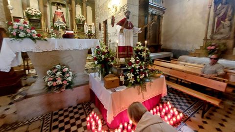 Comenzó al fin la procesión. Repicaban las campanas, empezó a sonar la música y el aire se llenó de fuegos artificiales. Entonces al niño le dijeron, o casi le gritaron, al oído: «Mira, o Teu Santiño».¡Y sí, allí estaba! ¡Era San Ramón, vestido de cardenal y portado a hombros! Así que el niño, entusiasmado, soltó el globo, a manera de homenaje, para que lo viese volar el santo. Hasta creo recordar, fíjense, que el santo sonreía también, mirando el globo; pero eso seguramente lo habré soñado, claro.