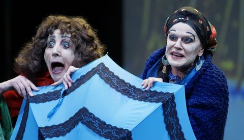 Mabel Rivera y Belén Constenla resucitan a las hermanas Fandiño en la obra «Voaxa e Carmín», que esta tarde escenifican en el Pazo da Cultura