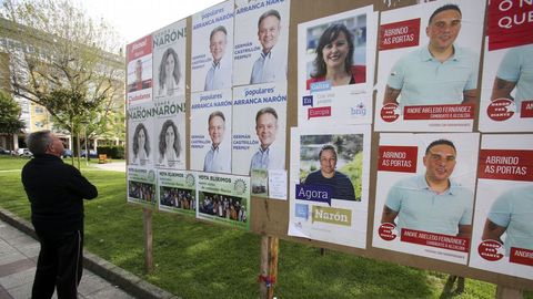 Más contenidos se muestran el resto de sus rivales políticos. Los paneles reservados para los carteles en los distintos barrios y parroquias naroneses son una auténtica ensalada de caras y siglas. Los populares, con el logo del partido bien a la vista, a diferencia del afiche del ferrolano Rey Varela, presentan a su nuevo alcaldable, el expiloto de ralis Germán Castrillón, con un contundente mensaje, casi una orden, Arranca Narón.