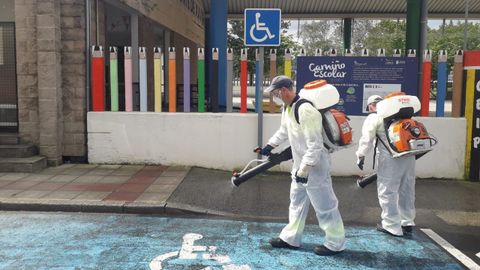 La limpieza y la desinfección se realiza durante los recreos, a petición de los directores de los centros. Este tipo de labores también se efectúan en los parques de los recintos escolares, además de los edificios de uso continuo como la casa consistorial, el aula CeMIT, el centro de formación Irmás Froilaz o el Pazo da Cultura. Además del baldeo y desinfección diarios de zonas de concurrencia pública, y de los parques infantiles y biosaludables de todo el municipio, y la campaña de limpieza de los contenedores.