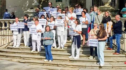 Así lo manifestaron en la concentración de ayer delante del consistorio local. «Traballo digno, solución, horarios legais xa» son los mensajes de las pancartas que exhibieron durante la protesta.