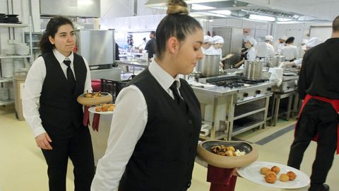 «Non faltaron imaxinación e técnicas. Houbo crocantes, produtos emulsionados, outros marcados á prancha. Combinacións con arroces, raviolis, salsas... a creatividade non tivo límites, e sempre cinguíndose á cesta da compra que se lles facilitou», explica Leis, quien añade que, en este caso, el jurado técnico y el gastronómico no coincidieron en su puntuación. Se llevaron los honores los equipos del IES Sanxillao, de Lugo -Jorge Rey Rivera y Daniel Fernández Quintas- y el del coruñés CIFP Paseo das Pontes, integrado por Antonio Tacón y Daniel López. El premio al cartel fue para Jonathan Nogueira del IES Leixa. La conselleira de Educación, Carmen Pomar, subrayó en la entrega de galardones que «os restauradores que saen dos nosos centros son recoñecidos e demandados dentro das nosas fronteiras».