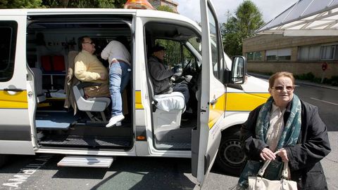 Les trasladan en ambulancias tan llenas de sillas que parecen microbuses. Van tantos que algunos hasta viajan en el puesto del copiloto, como ayer a la vuelta Isabel o Rafael Armada, que residen en Bares, Mañón.