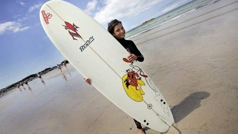 Con la llegada del verano, Celia cuenta las horas para irse a la playa de A Lanzada a surfear con sus compañeros de la escuela. «Me encanta coger olas siempre que puedo. Ahora ya cojo algunas de dos metros, cuando las hay, y disfruto mucho», afirma.