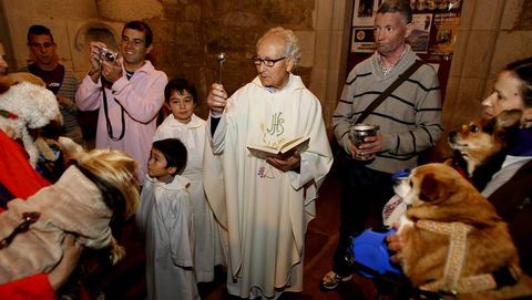 1 Las mascotas de A Coruña tienen la posibilidad de ser bendecidas dos veces al año, una el 3 de octubre, festividad de san Francisco de Asís, y otra el 17 de enero, la más tradicional, san Antonio Abad. «San Francisco es patrón de la ecología, del medio ambiente, y se incluye a los animales», me comenta Salvador Peña, presidente de la Venerable Orden Tercera de San Francisco, de cuya iglesia partió ayer una procesión que recorrió parte de la Ciudad Vieja con visita a las Clarisas. De vuelta al templo, y después de la misma, tuvo lugar la bendición de las mascotas.