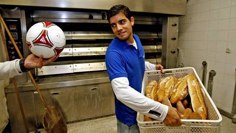 En verano, Adrián Gómez, de 28 años, trabaja desde las 6 de la mañana hasta las 14 horas. Hasta ahí, madrugar es una costumbre que se adapta al cuerpo como los animales se acoplan a sus respectivos medios naturales. El problema surge cuando el reparto de pan y el fútbol de pretemporada -y más tarde los primeros partidos ligueros- colisionan. «Hubo días que tuve que coger un autobús para ir a jugar una hora después de finalizar mi jornada de trabajo», relata Adrián Gómez, quien se incorporó por primera vez a las filas del Pontevedra B en el 2007 procedente del Nueva Chicago de Buenos Aires, su ciudad natal. «Y madrugar y luego tener que aguantar a algún árbitro, eso es algo duro».