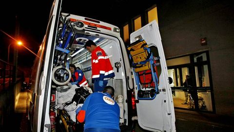 Pasadas las diez, hay hambre. Las cenas se hacen en la base y las comidas, en Montecelo. «No siempre estamos tan juntitos como hoy», admite Nico. Una crema de verduras, pasta y bocadillos es el menú del equipo. Al poco de sentarse, suena el teléfono de Pepa. A la carrera se deja todo. Es literal. Por el camino se ponen las chaquetas. Hay tres minutos para montarse en la ambulancia y arrancar. Elena detalla que la salida es al centro médico de Adeslas, en Barcelos. Una mujer de 70 años con pérdida de conocimiento. Se llega en cuatro minutos.