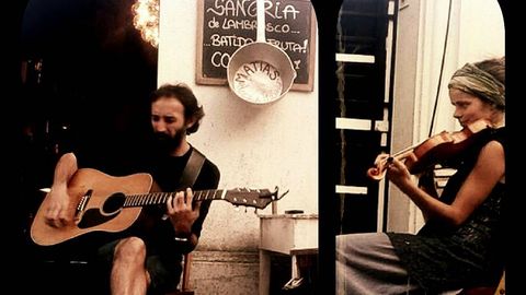 Al margen de su trabajo artístico, Matías Moreno también tocó varias canciones con peregrinos que hacen la ruta con su instrumentos a cuestas. «Toqué con muchos músicos, pero recuerdo especialmente cuando me acompañó una violinista de la Filarmónica de Múnich y un grupo de músicos tradicionales australianos».