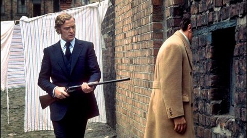 Michael Caine se suma a este raro síndrome de estilo sobrevenido en Get Carter. Maneja con idéntica finura su traje de mohair y su dandismo por el Swinging London de finales de los sesenta, entre minifaldas, descapotables y trajes hechos a medida. Interpreta a Jack Carter, un asesino a sueldo de la mafia londinense. Pero no uno cualquiera, por supuesto. Si la manera de vestir es consustancial al poder de un hombre (y el guion nos invita a pensar que sí), Carter posee una gran reputación dentro de su gremio. Su hermano ha muerto en la ciudad natal de ambos, Newcastle, en circunstancias poco claras, y como un héroe de western que vuelve a su pueblo, toma un tren de regreso a sus orígenes con la intención de reventar las costuras de la ciudad. Viaja tranquilo, cómodamente sentado en su vagón mientras lee Adiós, muñeca de Raymond Chandler. Mike Hodges, el director, presenta a su personaje con rapidez, eficacia y elocuencia. Amante de la moda, intelectual, libertino, singular, decadente; con semejantes credenciales al protagonista solo le falta entrar en un garito con la pistola colgando lánguida de la mano y exclamar: «¡Manos arriba! ¡Soy Oscar Wilde!».