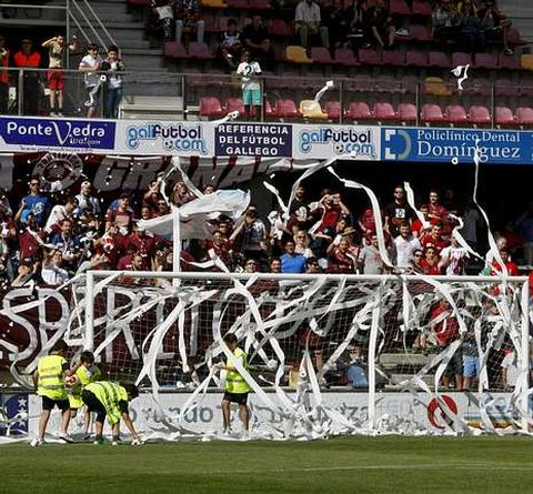 El precio, el desánimo, el buen tiempo o la mentalidad de que todavía quedan dos fases más, si se supera esta, pudo haber pasado por la mente de todos aquellos que ayer dejaron Pasarón a medio gas. Tras un minuto de silencio por el fallecimiento del socio número 2 del club, los aficionados comenzaron a corear al Pontevedra. Desde la grada Sur, las peñas llenaron de papel la portería de Edu, dejando una imagen que pocas se veces se ven en el estadio. Bajo el cartel de «Espirito do 84», no dejaron de animar ni un solo minuto, a pesar de que el resto de gradas se venían un poco abajo al ver que el juego local no cumplía las expectativas de cicatrizar la herida.