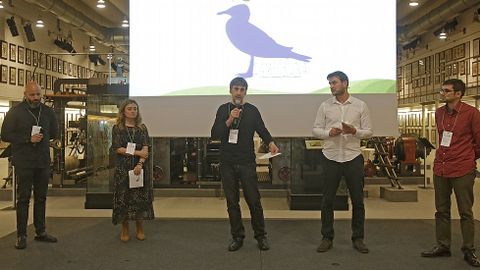 Durante las dos horas largas que duró el tiempo de las presentaciones hubo de todo. Incluso muchas risas, como durante la participación de los niños del Otero Pedrayo de O Barco; los comentarios virtuales de Héctor, del Viñagrande; o cuando Xacobo de Toro terminó su cuento sobre unos profesores que tenían un sueño (Paisaxe Vivida) diciendo: «Vosotros decidís cuál es el final» de la historia, mirando al jurado. Este estaba formado por tres indispensables de la innovación educativa en la España actual: Clara Cordero (@AgoraAbiertA) maestra y diseñadora de experiencias de aprendizaje; Chema Lázaro (@lepetitpan), maestro de Primaria, coordinador de innovación y formador en la Universidad Rey Juan Carlos de Madrid; y Garbiñe Larralde (@garbinelarralde), profesora de bachillerato en el colegio Jesús María de Bilbao y formadora de docentes. Un problema personal impidió estar a Juan de Vicente (@jdevicenteabad), orientador del IES Miguel Catalán de Coslada y flamante ganador del primer certamen Proyecta D+I (Docente Innovador).