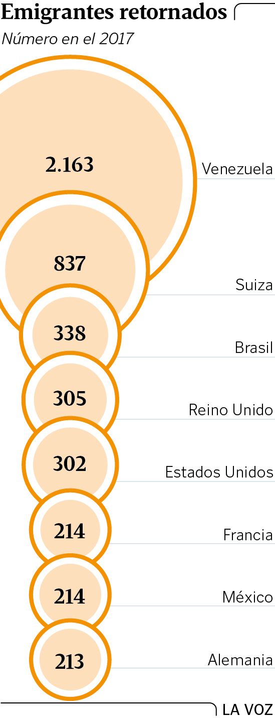 11 jul 2018 . Actualizado a las 10:11 h.El pasado año, 6.202 gallegos que residían en el extranjero decidieron retornar a casa. Así lo reflejan los datos presentados este martes por el secretario xeral de Emigración, Antonio Rodríguez Miranda, durante una visita en Santiago al negocio de una emigrante retornada, Adriana Asorey. Esta cifra supone un incremento del 21 % con respecto al 2016 y representa un récord de retornos dentro de una tendencia al alza que se traduce en una escalada del 90 % en el número de retornados desde el 2009. Más de la mitad de esos emigrantes que regresaron durante el 2017 eran menores de 45 años y algo más de la tercera parte (2.163) procedían de Venezuela.
