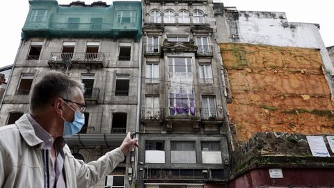 El bajo del inmueble acogió hasta hace tres años una conocida tienda de fotografía, pero los inquilinos se marcharon «y todavía deben dinero», asegura Juan Carlos Rial, que abre la puerta de acero que ha sido colocada provisionalmente. Antes de ponerla «hubo otro nuevo intento de okupación. Se metió dentro una persona, pero pudimos detectarlo con la policía y el individuo no tuvo más remedio que salir».