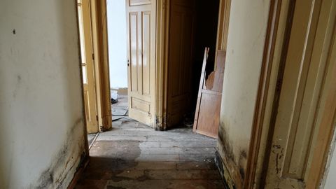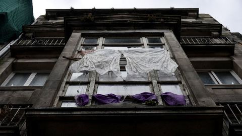 Desde fuera, el edificio simula contener algo de vida, con macetas en los balcones. Pero dentro solo hay devastación. En el primer piso, unas cortinas de color púrpura, símbolo de la nobleza y el lujo, esconden un panorama desolador. «Murieron dos personas en el interior», recuerda el propietario, que mantuvo una lucha judicial para recuperar el edificio y rehabilitarlo. Los dueños de los inmuebles colindantes, también en mal estado, quisieron comprarlo, pero no se vende. El objetivo es recuperarlo y dedicarlo a alquiler para costear fines sociales y educativos.