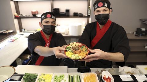 A pesar de que no hay que ser un Michelin para elaborarlo en casa, es cierto que se ha posicionado, y más en los tiempos que corren, como una de las recetas top del delivery. «Funciona muy bien porque es fría, y cuando pides a domicilio algo caliente, si te llega 15-20 minutos después, la calidad pierde, y en este caso te lo puedes pedir a la 13.30 horas y comer a las 15 horas, que está perfecto», explica Sandra, que también argumenta a favor de pedirlo a domicilio el hecho de que se necesite muy poquita cantidad de muchos alimentos. «El 80 % de la gente lo toma con arroz de sushi, hay a quien le gusta cuidarse más y lo toma con arroz integral o quinoa, pero el sushi es complicado de hacer. Hay que cocerlo, lavarlo y secarlo, tienes que poner una mezcla de vinagre, de azúcar... Difícil, difícil, no es, tampoco es difícil la tortilla de patatas, y a veces, nos da pereza. O te vas a comprar un lomo de salmón y te cuesta 15 euros, nosotros porque lo compramos en cantidad, e igual le vas a echar un poquito o la mitad, lo tienes que congelar... Por 9 euros te lo dan todo hecho, las salsas son exclusivas, al final, no es una comida cara y compensa pedirla», explica la propietaria de Mahalo.