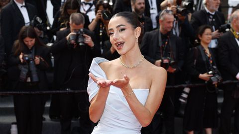Lola Lolita, una cenicienta moderna en Cannes. La influencer Lola Lolita fue una de las que desfiló en la alfombra roja de Cannes el día de la clausura del festival. Lo hizo con un vestido de color azul claro, asimétrico, con drapeados y escote palabra de honor, con una falda con diferentes volúmenes. Con el pelo recogido, lució una gargantilla a juego con los pendientes y unos zapatos de punta en color blanco.