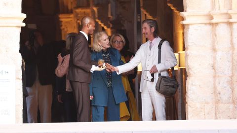 La pareja recibió a los invitados a las puertas del monasterio de Santa María de Retuerta, en Valbuena, muy cerca de donde hoy se casan