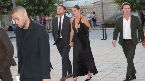 Los novios escogieron unos elegantes estilismos para la noche de su preboda. Mientras Alex Gruszynski optó por una traje en azul eléctrico, combinado con una camiseta en crudo, Stella Banderas se inclinó por un espectacular vestido negro, con lineas sencillas pero muy elegante. Lo combinó con uno de los colores tendencia de este otoño, una sandalias burdeos y optó por llevar su melena rubia suelta.