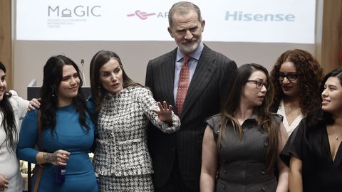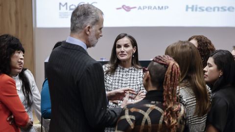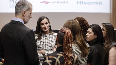 Más tarde los reyes han mantenido un encuentro con 15 mujeres supervivientes de la trata que han recibido formación gastronómica en colaboración con la asociación APRAMP, de asistencia integral a este colectivo, la primera vez que Felipe VI acude a un acto de esta asociación con el que la reina Letizia lleva implicada varios años.