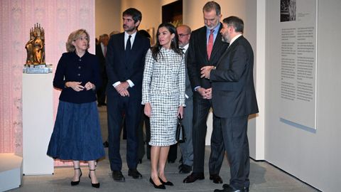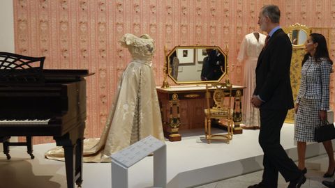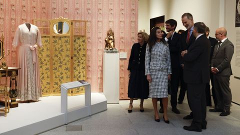 Acudió a la exposición sobre la vida y el legado de la reina Victoria Eugenia con una prenda confeccionada por mujeres víctimas de la trata, con las que se reunió más tarde