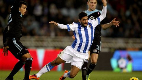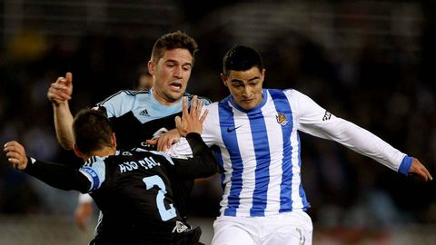Andreu Fontás fue el hombre designado para suplir las labores de Borja Oubiña en el pivote defensivo. Sin embargo, no fue capaz de dotar al centro del campo de la consistencia que el capitán estaba aportando en las últimas jornadas. El conjunto céltico no consiguió hacerse con el dominio del balón más allá de en momentos puntuales, y eso obligó a que los hombres de corte ofensivo tuviesen que buscarse la vida por las bandas, puesto que el centro del campo no surtía de balones para enfilar el ataque. La línea media viguesa resultó ser una vía de entrada para la Real, pero no una de salida para el ataque céltico.